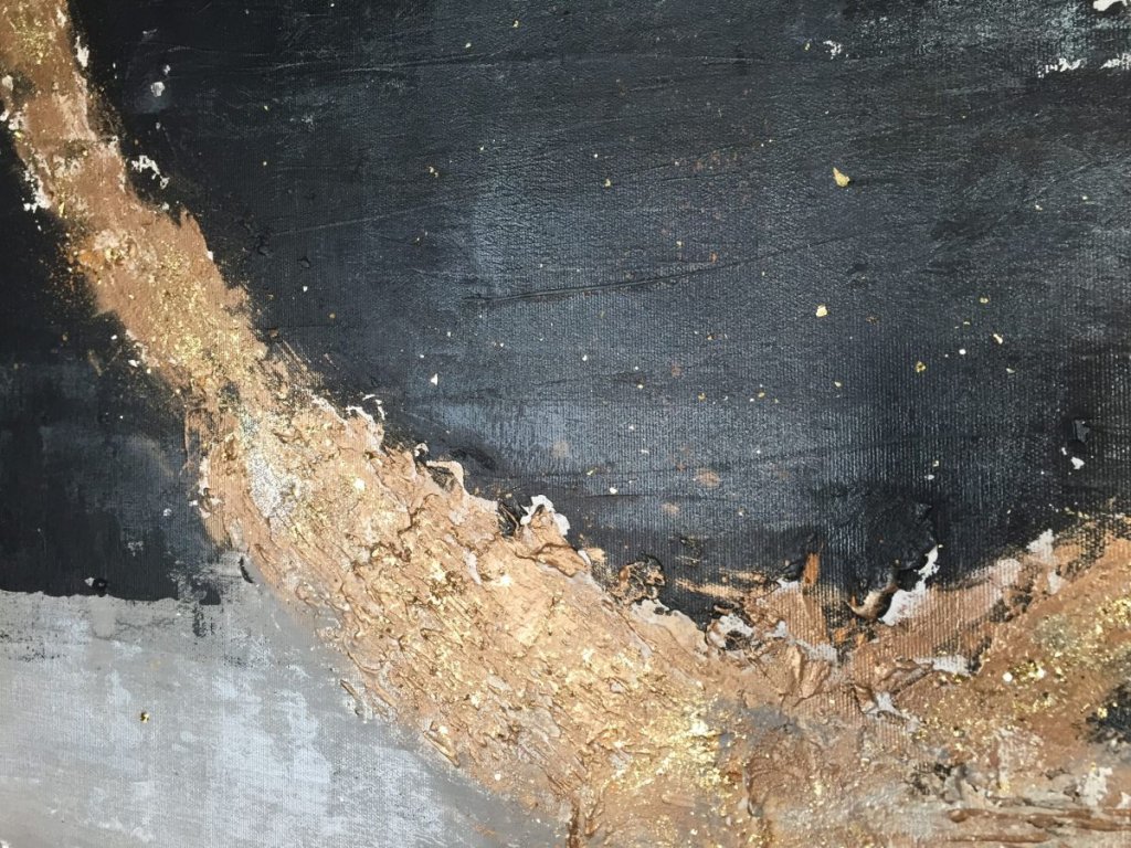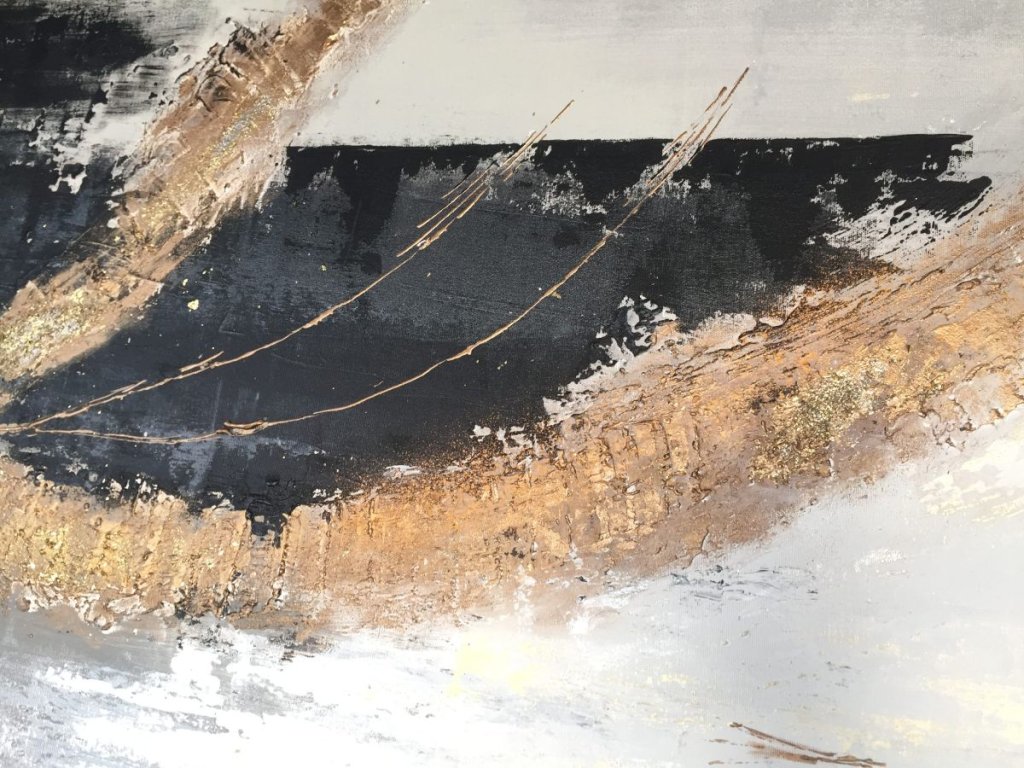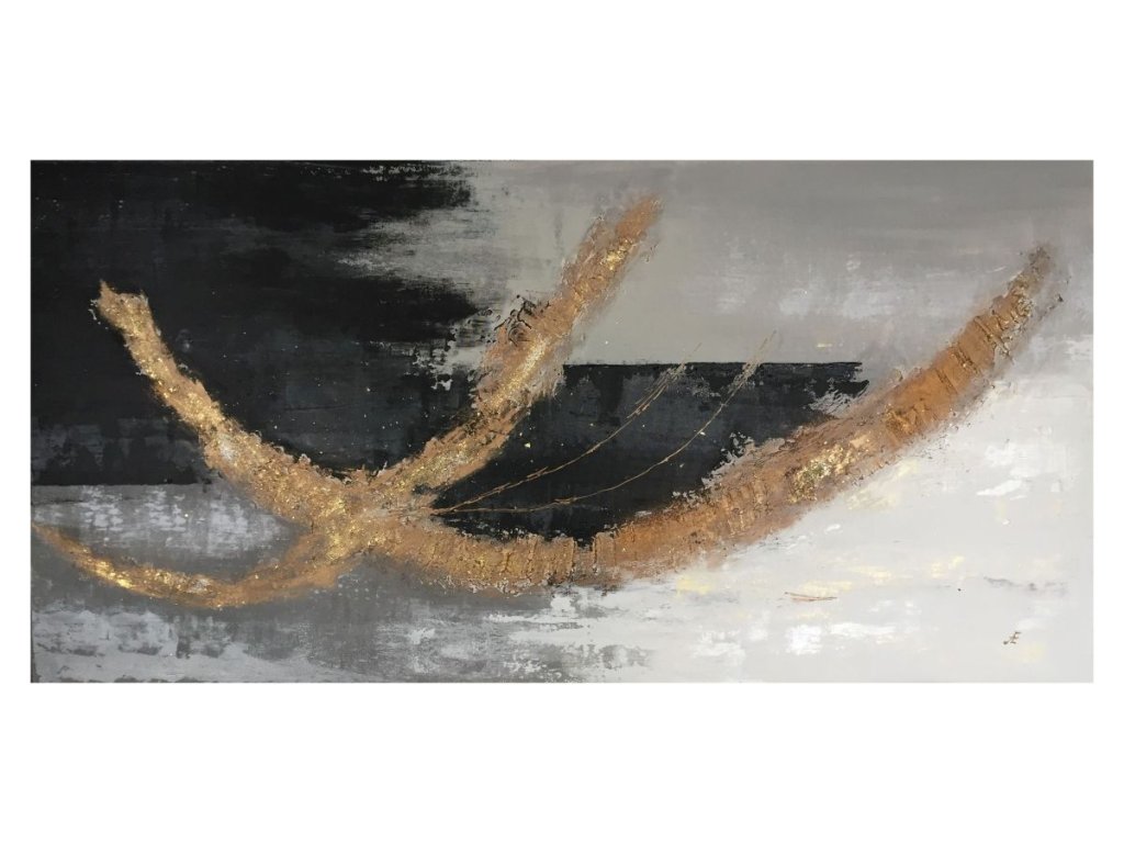 Az ÜSTÖKÖS egy eredeti, kézzel készített, 80×160 cm-es absztrakt akrilfestmény, amely a modern monokróm eleganciát gazdag, arany texturált részletekkel ötvözi. A fekete, szürke és fehér árnyalatokra épülő kompozíciót dinamikus, fénylő struktúrák teszik különlegessé, erőteljes, mégis kifinomult vizuális hatást keltve.