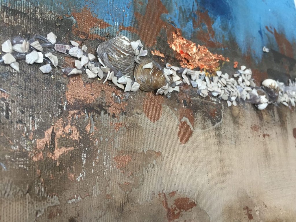 Az „A FOLYÓ PARTJÁN” egy kézzel festett absztrakt festmény, amely a természet csendes nyugalmát és a folyópart organikus ritmusát idézi meg. A rétegzett festéktechnika, a földszínek és a finom textúrák harmonikus, kiegyensúlyozott atmoszférát teremtenek, miközben teret hagynak az egyéni értelmezésnek és érzelmi kapcsolódásnak.