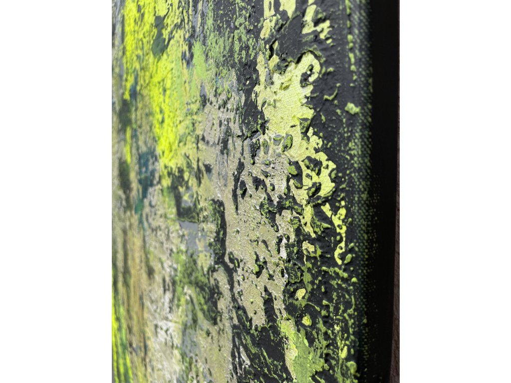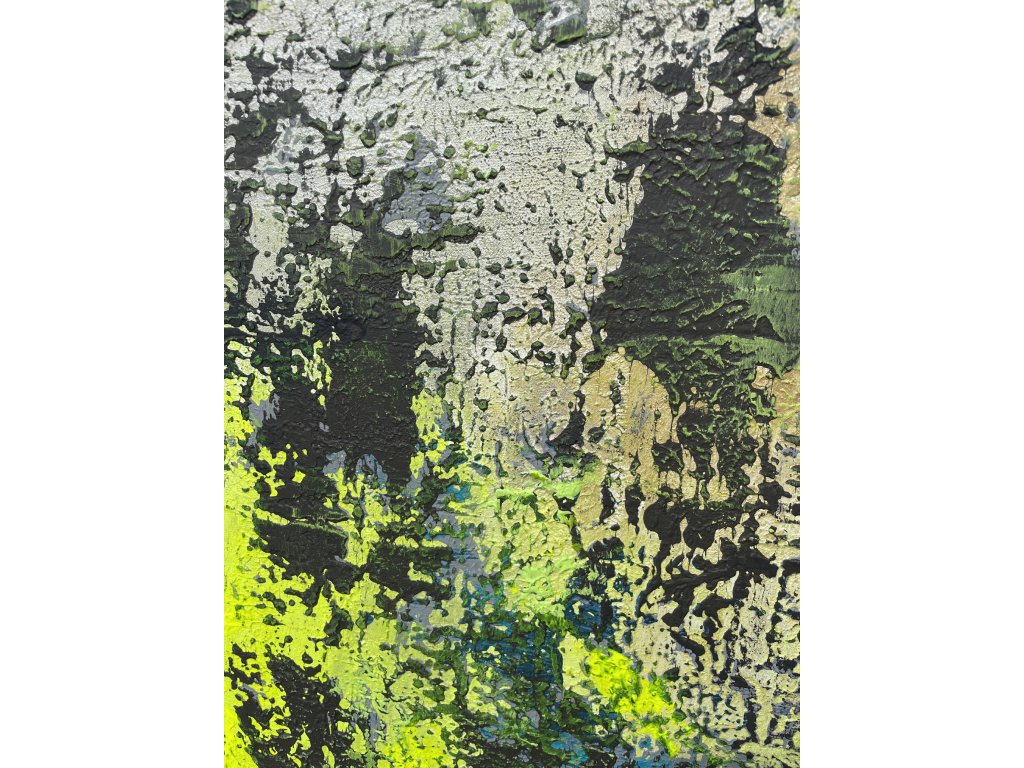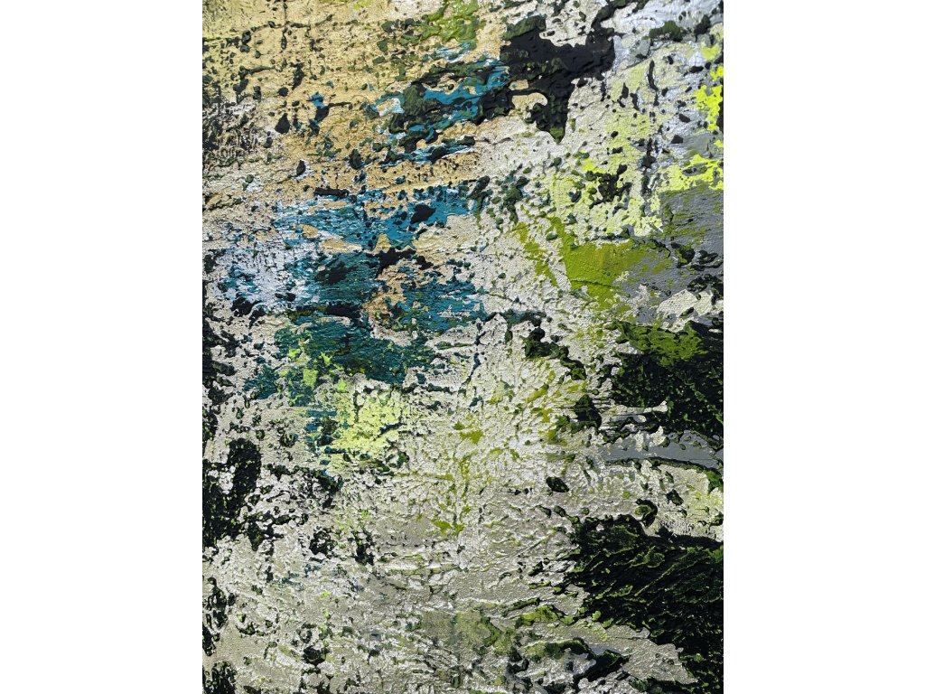 Az esőerdő buja zöldje és a nyugodt tó kék tónusai harmonikus kapcsolatot teremtenek a környezettel, elmélyülésre és meditációra hívva a szemlélőt. Ez a modern absztrakt alkotás a természethez való mély kötődést és a belső nyugalom megtalálását sugallja, tökéletes kiegészítője lehet harmonikus, nyugodt enteriőröknek. Az alkotás mérete 90x100 cm.