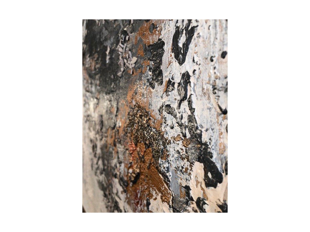 A Bronz varázs egy modern absztrakt festmény, amelyben a bronz szín dominál, kiegészülve finom bordó, narancs, fehér, grafit szürke és barna tónusokkal.