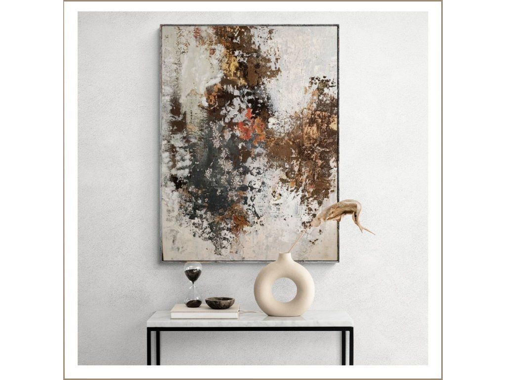 A gazdag, meleg színvilág elegáns és kifinomult hangulatot teremt, miközben a kompozíció mélységet és karaktert ad a térnek. Az egyedi, kézzel festett alkotás tökéletes választás modern és klasszikus enteriőrökbe egyaránt.