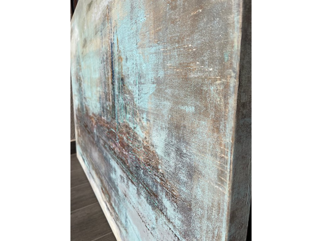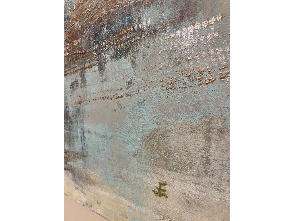 Ez a modern absztrakt alkotás nyugalmat, tágasságot és végtelen lehetőségeket sugároz, tökéletes választás kortárs enteriőrök hangsúlyos, mégis elegáns fókuszpontjaként. Az alkotás mérete 80x120 cm.