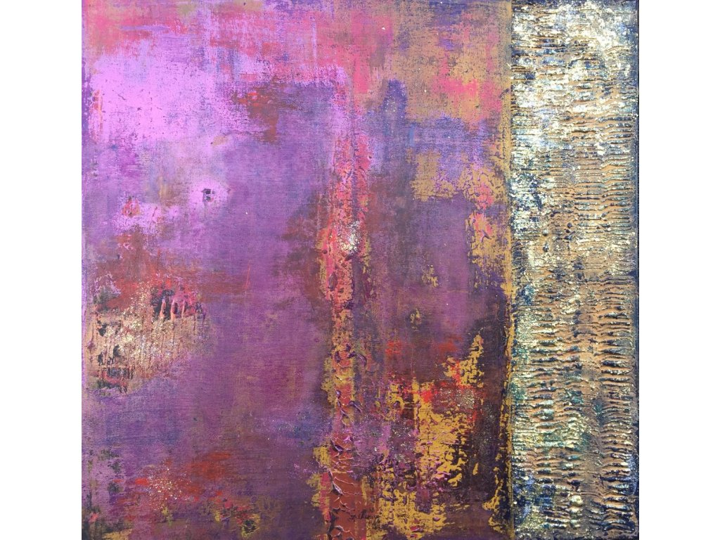 Az ESSENCE egy 60×60 cm-es, kézzel készült absztrakt mixed media festmény. Bronz textúrák, pink, lila és arany árnyalatok, látványos 3D hatású felülettel. Egyedi, eredeti alkotás prémium enteriőrökhöz.