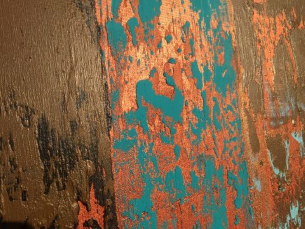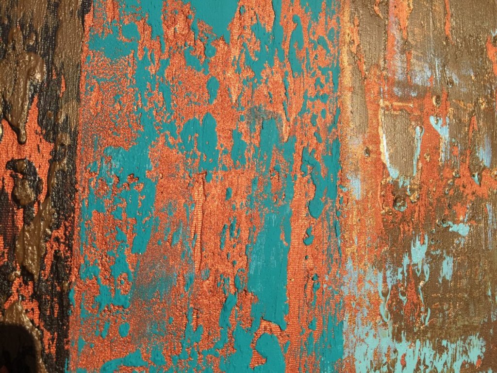 A kompozíció dinamikája a belső energia és az áramló mozgás érzetét kelti. A rétegzett felületek és a különböző anyagok kölcsönhatása változó fény- és árnyékhatásokat hoz létre, így a festmény a tér különböző pontjairól nézve mindig új arcát mutatja. Ez a vizuális mélység teszi a Flames alkotást igazán karakteressé.