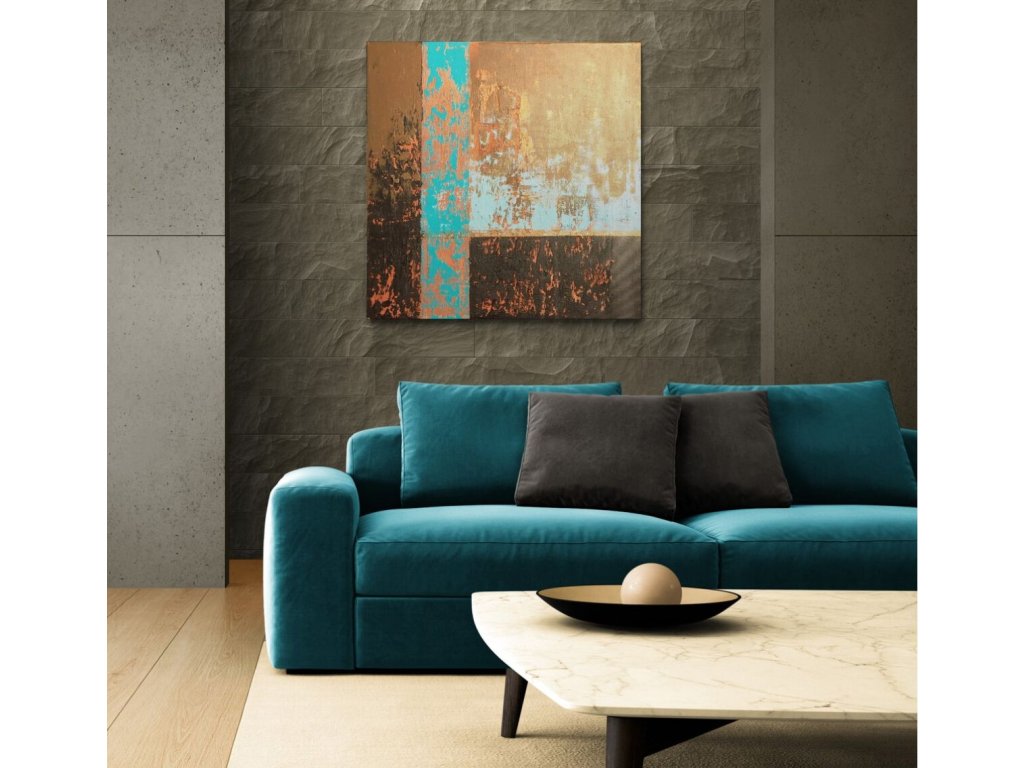 A Flames egy 90×90 cm-es, kézzel készült, térhatású absztrakt akrilfestmény gazdag, rétegzett mixed media felülettel. Modern, energikus hangulatú, egyedi és sorszámozott alkotás, amely vakrámára feszítve azonnal falra akasztható.