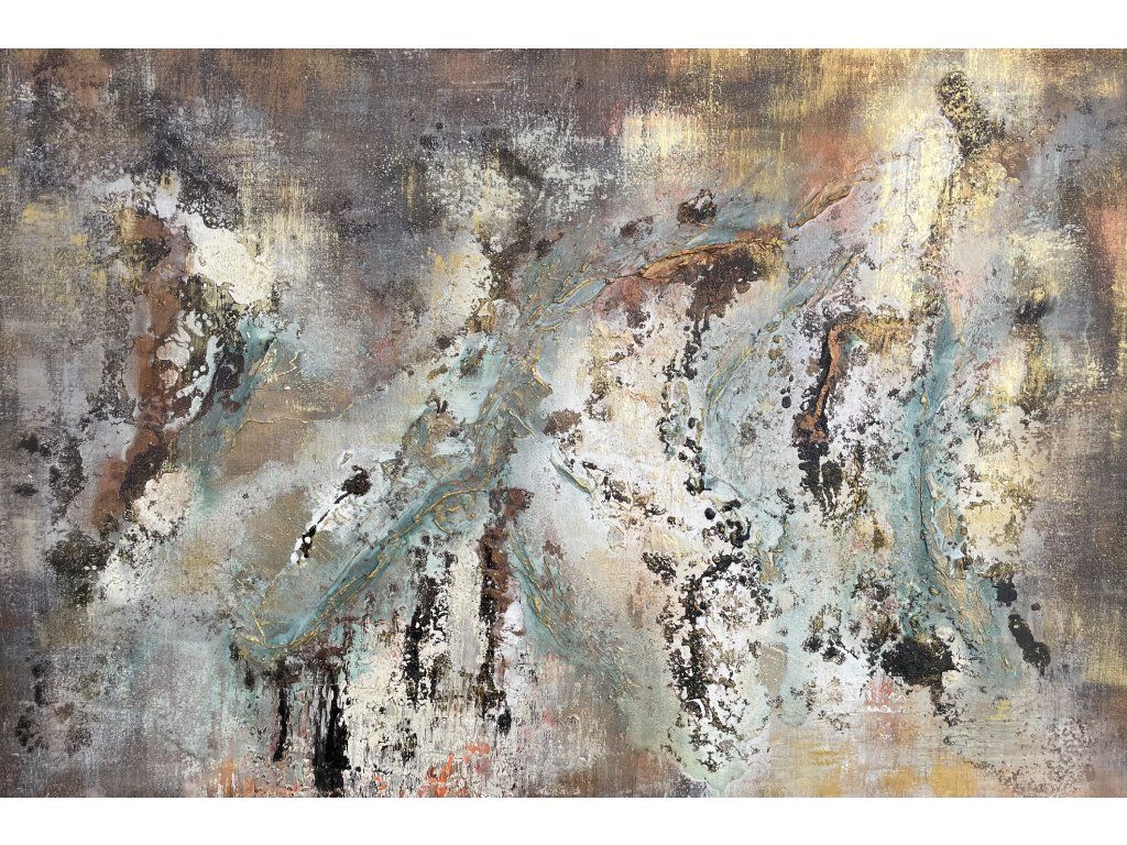 A fehér és földszínek kontrasztja, a bézs, szürke és zöld árnyalatok, valamint a gazdag textúrák dinamikus, mégis harmonikus kompozíciót alkotnak. A vászon havas táj látványát idézi, tökéletesen illeszkedve modern és természetközeli enteriőrökbe. Mérete 120x80 cm.