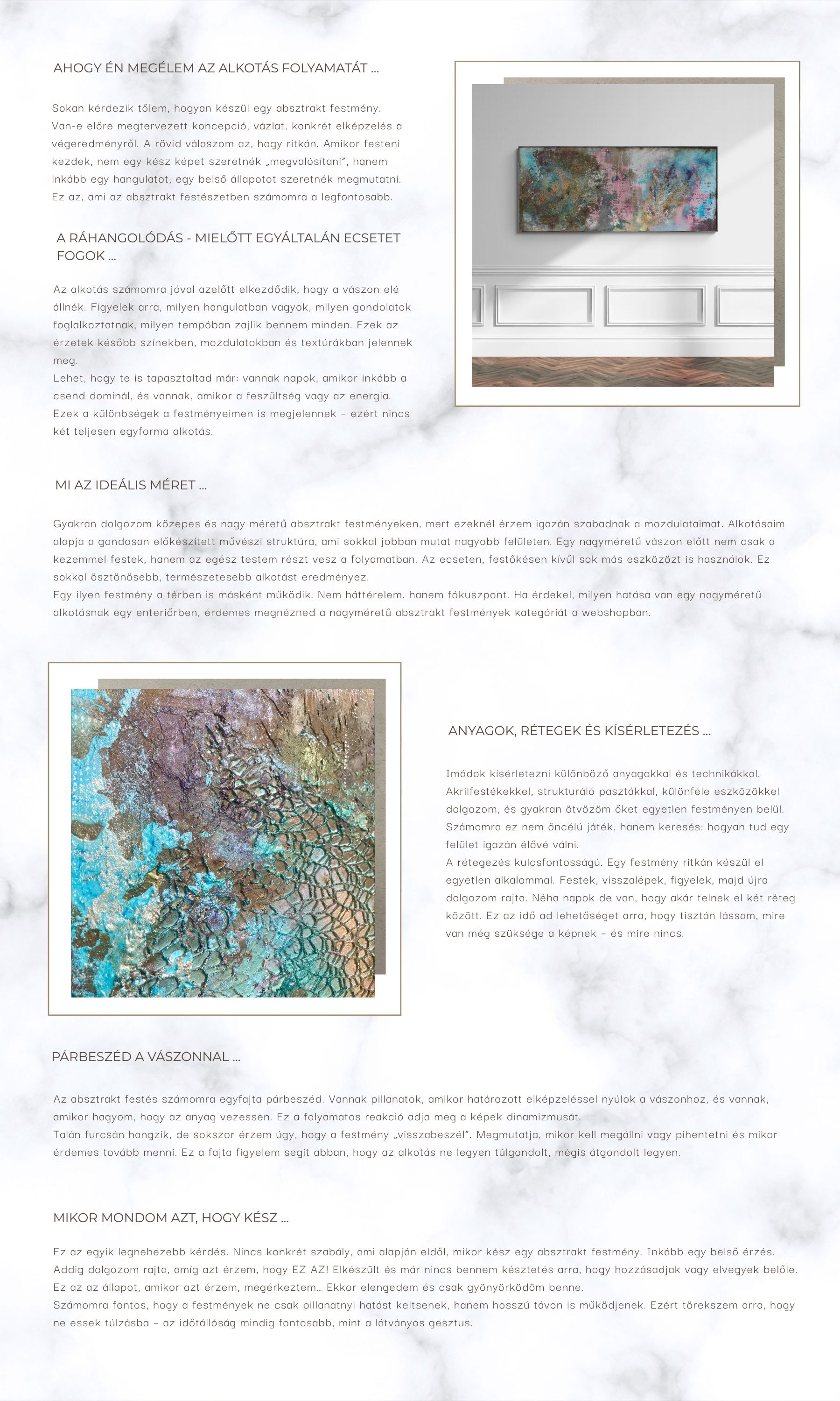 Sokan kérdezik, miben más egy eredeti absztrakt festmény, mint egy nyomat. A különbség nemcsak látható, hanem érezhető is: a textúra, a rétegek és az anyaghasználat olyan jelenlétet ad a képnek, amelyet reprodukció nem tud visszaadni.