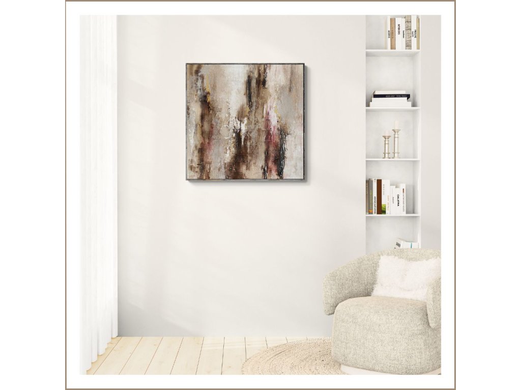 A lágy fehér és bézs tónusok nyugalmat sugároznak, a sötét barna mélységet ad, míg a finom bordó árnyalatok érzelmi finomságot visznek a kompozícióba. Ideális választás olyan terekbe, ahol a festmény halk, mégis meghitt hangulatot teremt, és a csendes pillanatok szépségét idézi.