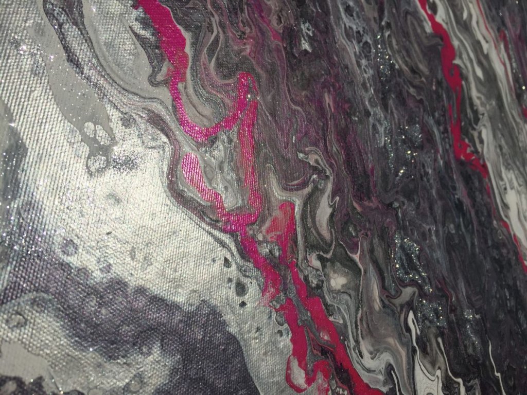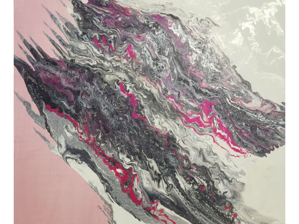 A Pink Rodonit egy 100×120 cm-es, sorszámozott, kézzel festett absztrakt akrilfestmény, amely a fluid art technika szabadon áramló formavilágát jeleníti meg. A kompozícióban a finom szürke és fehér tónusokat élénk pink színhasználat egészíti ki, látványos, mégis elegáns vizuális egyensúlyt teremtve.