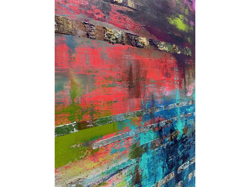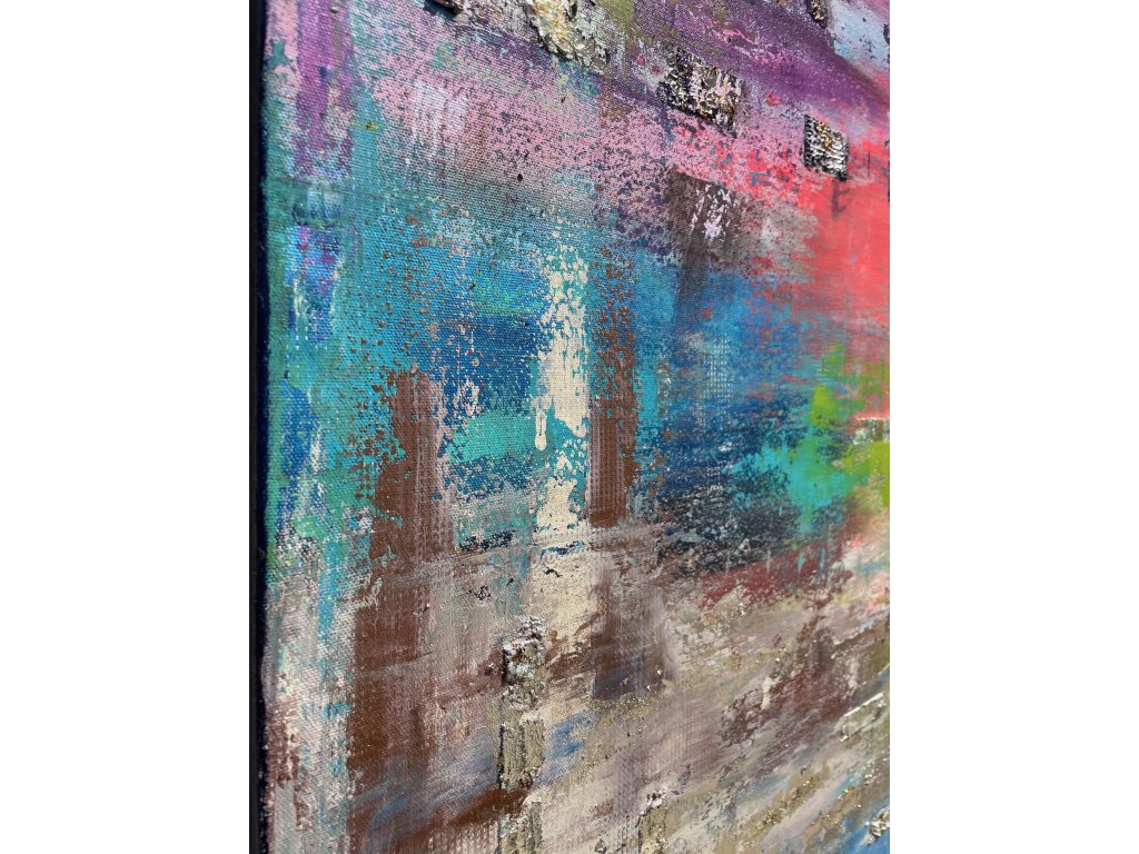 Az arany textúrák és a palettakéses technika könnyed eleganciát és ragyogást kölcsönöznek a festménynek. A kék árnyalatokkal és gazdag színpalettával megalkotott kompozíció mélységet, derűt és pozitív energiát sugároz, miközben finoman hat a néző belső világára. Az alkotás inspirálja az intuíciót, jó kedvre derít és harmonikus, friss atmoszférát teremt modern enteriőrökben.