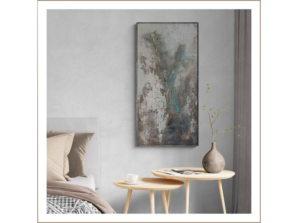 Ez a modern absztrakt mű a változás állandóságáról és a valóság finom egyensúlyáról mesél, letisztult, mégis erőteljes jelenlétével tökéletesen illeszkedik kortárs és minimalista terekbe. Mérete 50x100 cm.
