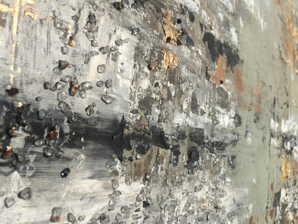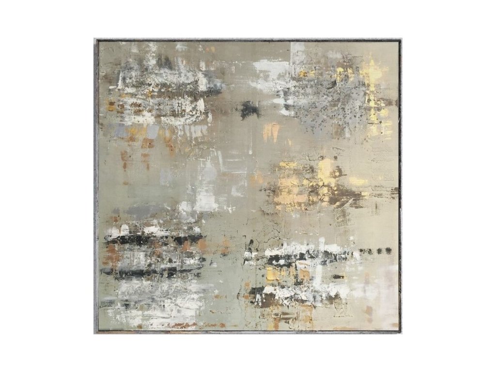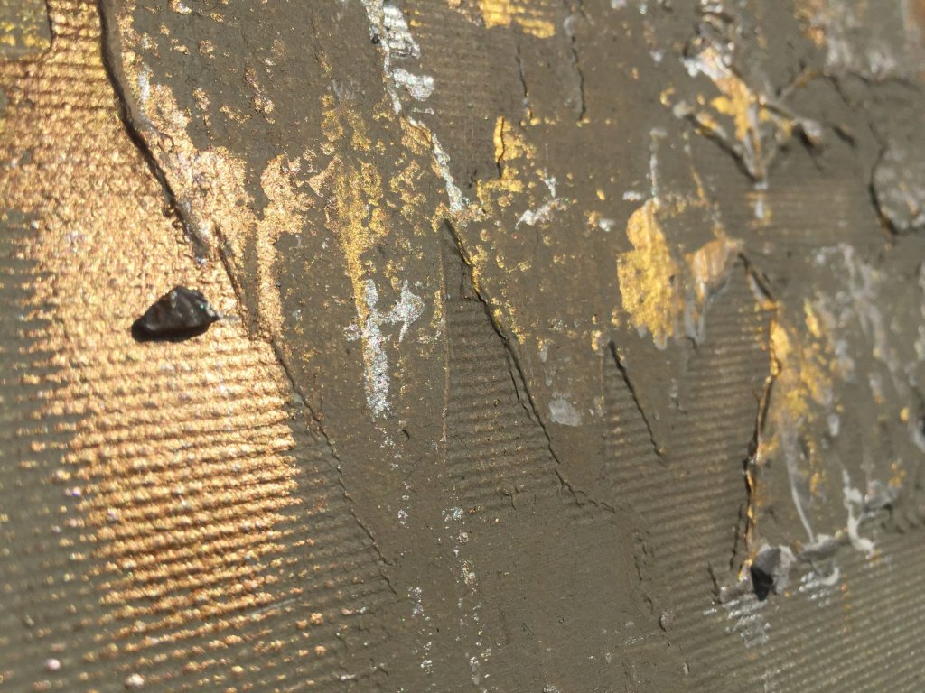 Az alkotás színvilágát természetes zöld, bézs, földszínek és visszafogott arany fényhatások alkotják. Ezek az árnyalatok a jáspis ásvány természetes szépségét idézik, miközben modern, kortárs formanyelven jelennek meg. A finom csillanások és strukturált részletek mélységet és eleganciát adnak a festménynek.